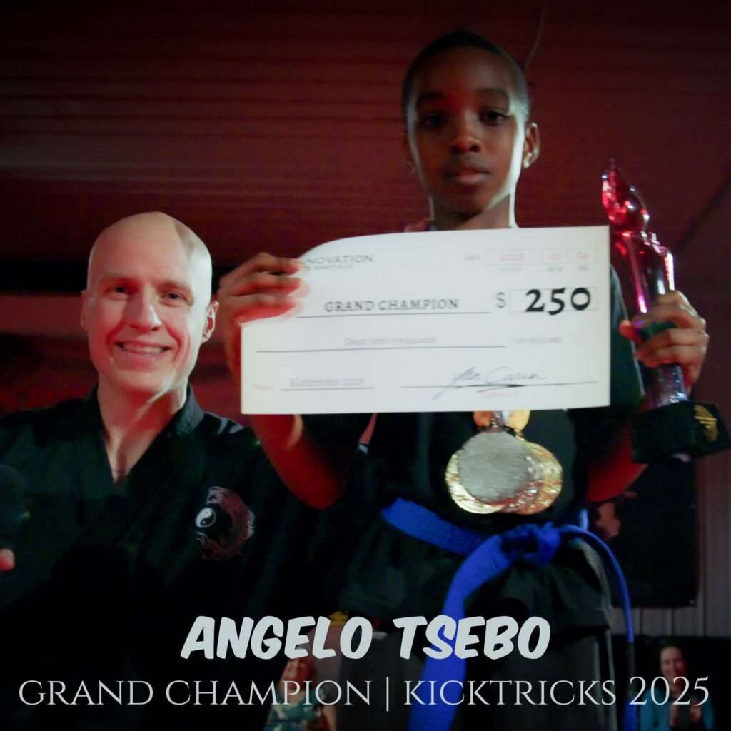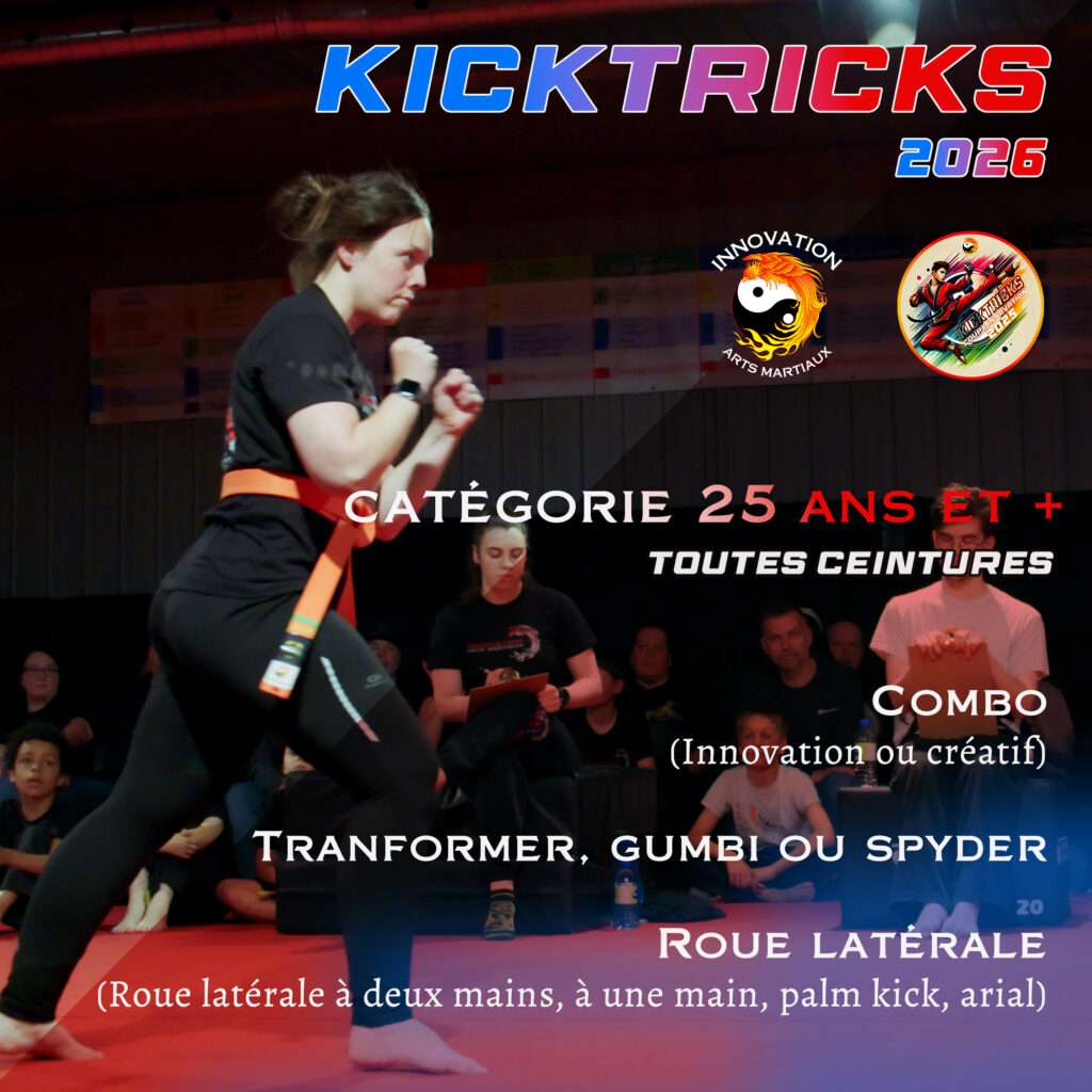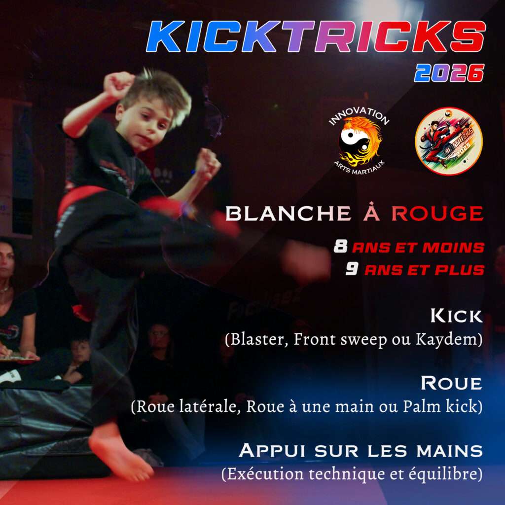 Un exemple ? Un élève de 7 ans, ceinture orange, qui décrocherait la première place dans trois catégories (meilleure kick, meilleure roue, meilleure appui sur les mains ainsi que le mega concours de vitesse de position) serait bien placé pour remporter le titre de Grand Champion Kicktricks 2026 !